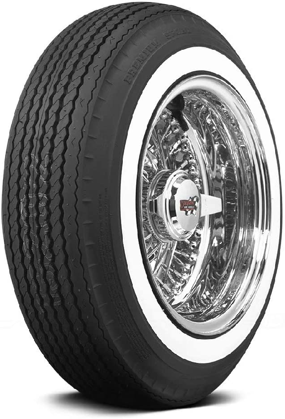 Kvalitní radiální pneumatika pro veteránské vozy s bílým bokem. Bílý pruh = 30 mm.